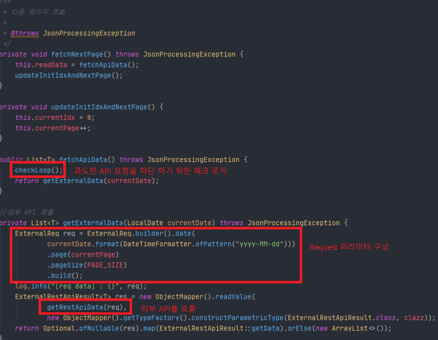 | currentIdx | 외부 API로 부터 응답받은 readData를 read()에서 하나씩 읽어 return 하는데 해당 시점의 readData의 index정보 |