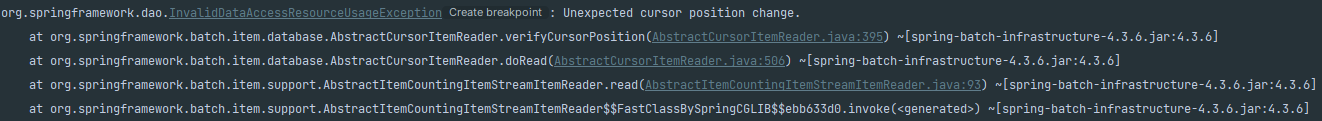 at org.springframework.batch.item.database.AbstractCursorItemReader.verifyCursorPosition(AbstractCursorItemReader.java:395) ~[spring-batch-infrastructure-4.3.6.jar:4.3.6]