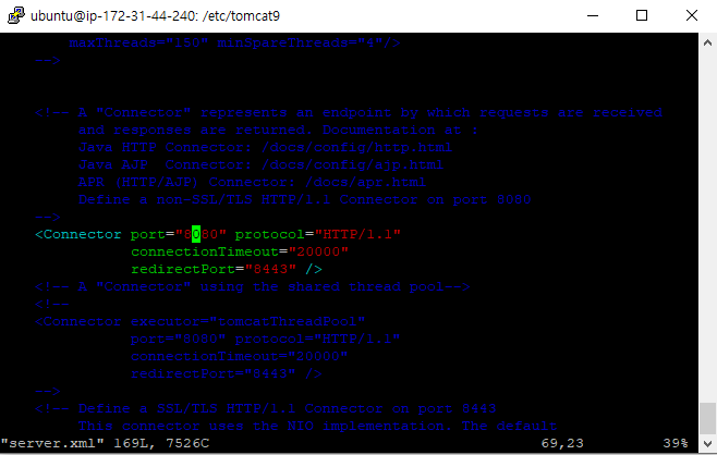 기존의 ip주소의 경우 접근할 ip:8080 을 입력해야 했다 포트 8080을 입력하지 않고 접속하려면 80포트로 변경해주면된다. 때문에 아래는 톰켓 포트 8080에서 80으로 변경하는법이 설명된다.