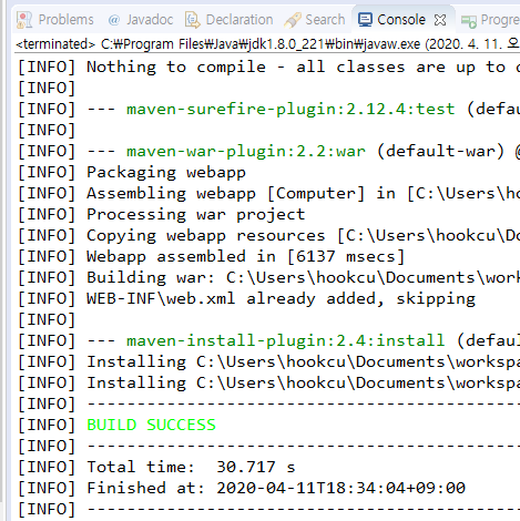 2. 아래 와 같이 BUILD SUCCESS 이면 성공