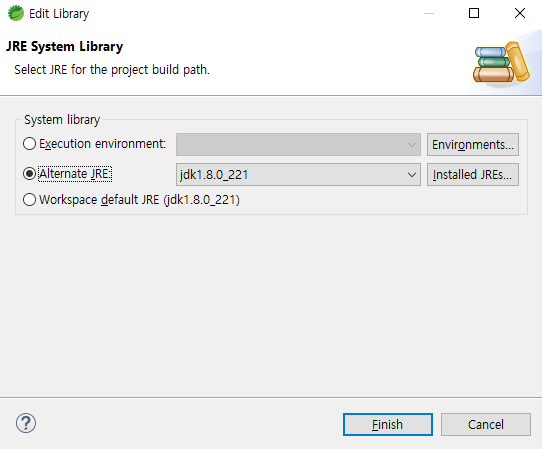 2-1 프로젝트 우 클릭 JAVA Build Path -> JRE Ststem Libary 클릭