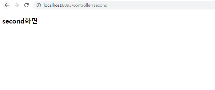 실행화면 (http://localhost:8093/controller/first 를 입력 후 second로 리다이텍트)