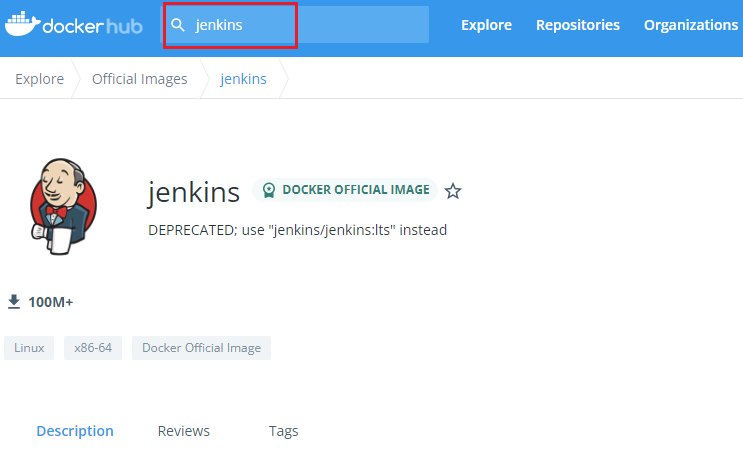 View Avaliavle Tags를 클릭 해보시면 Tag들이 보이실겁니다. Tag는 버전이라고 보시면 됩니다. Jenkins image 의 여러버전이 존재 하니 필요한 환경에 맞게 이미지를 PULL 받으시면 됩니다. 저는 최신버전을 사용하겠습니다.